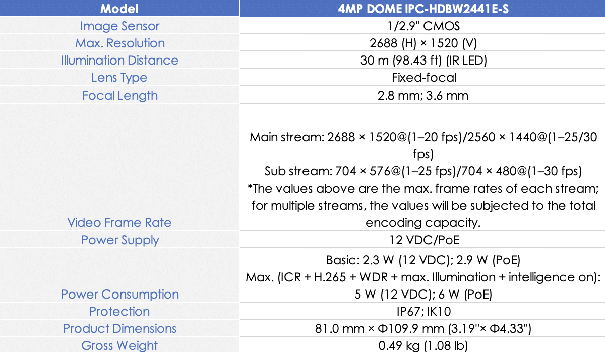 4MP DOME IPC-HDBW2441E-S