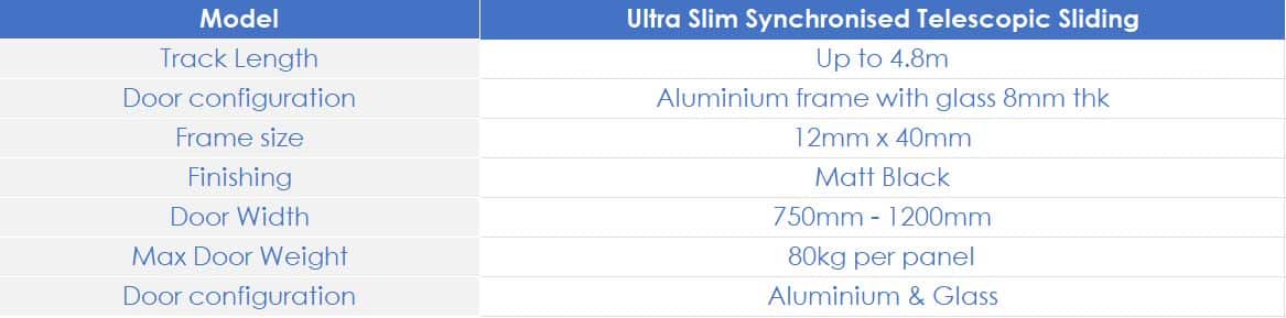 Ultra slim telescopic sliding doors offer a wider opening than a single sliding door, allowing you to maximize your usable space. Unlike single sliding doors, which have a width limitation that can restrict the size of the opening, it combines multiple panels that slide along tracks, providing a broader opening. This design flexibility enables you to customize the system to your specific needs, ensuring that you can achieve the ideal balance between functionality and aesthetics in your space. The integrated soft-closing mechanism ensures quiet and smooth closing without any harsh banging noises.